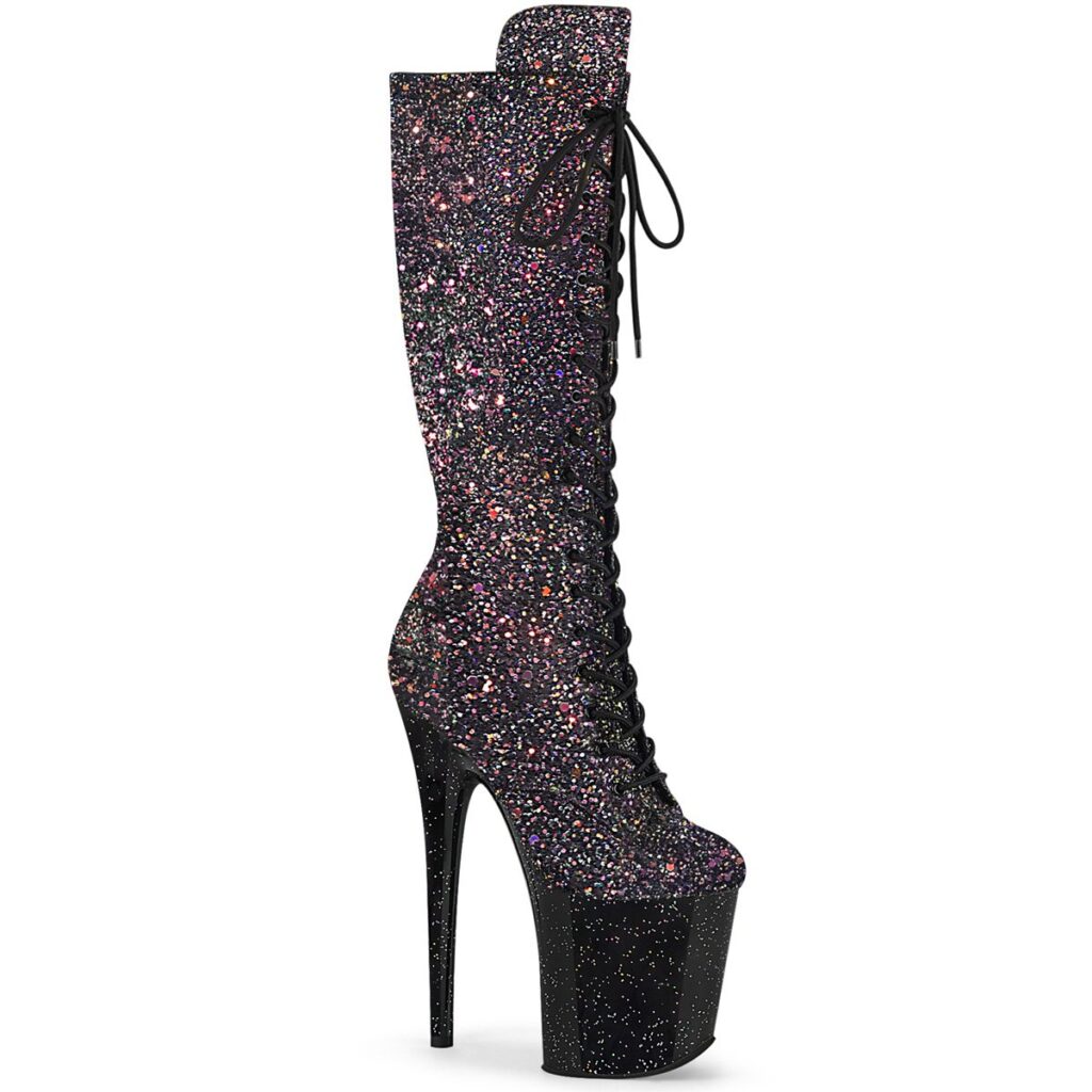 These pole boots feature an 8-inch heel, which sounds pretty scary. But considering they have a 4-inch platform, it’s actually only the equivalent of a 4-inch heel when you think and because they are front lacing boots they give more support and therefore confidence when wearing them.